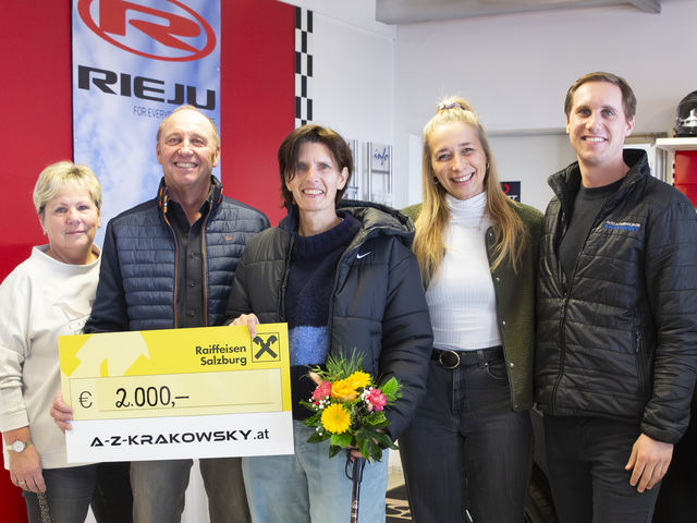 Das Auto- und Zweiradcenter Krakowsky verzichtet seit sechs Jahren auf Weihnachtspost und nutzt das dafür vorgesehene Budget für Menschen in Not. So konnten in den letzten Jahren bereits Familien in schwierigen Situationen, schwer erkrankte Kinder und die Lebenshilfe unterstützt werden. Heuer führt das Unternehmen diese schöne Tradition fort und überreichte eine Spende von 2.000 € an Annemarie Winter, die an Multipler Sklerose (MS) leidet. Die Altenmarkterin erhielt ihre Diagnose bereits 2003 und kann seit 2007 nichtmehr arbeiten.